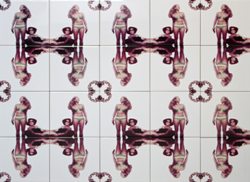 Far off just beeing decoration Azulejos represent cultural identity. They transport the imagery oft the country and reflect on its development through history. The commener tourist often finds the perfect holiday memory in them. Azulejos are Portugese trademark. In the Image Souvenir Series this relation is reversed. The tourist leaves his image behind on one of the most important expressions of portuguese culture. He is abducted into the ornamental Designs and becames part of the Fassades of the citiy he has visited.